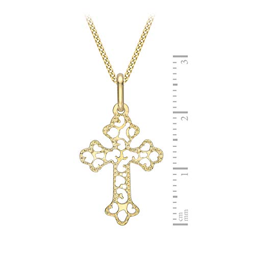 Carissima Gold dames 9kt geel goud filigraan kruis hanger op stoeprand ketting 46cm-18′