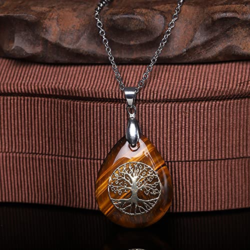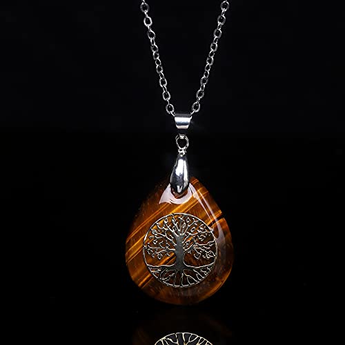 Tijgeroog Stenen Ketting Healing Crystal Gem Hanger met Rvs Ketting Levensboom Hanger-40g, 0.98″x1.37″x0.19″