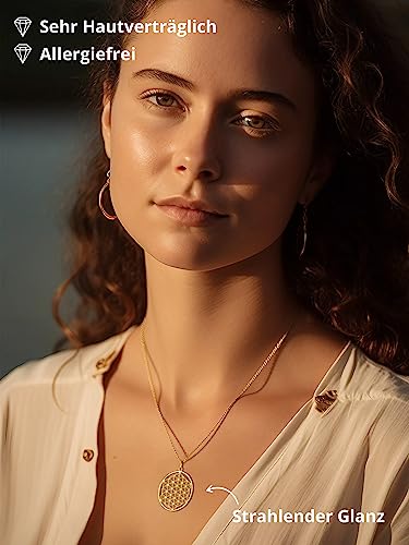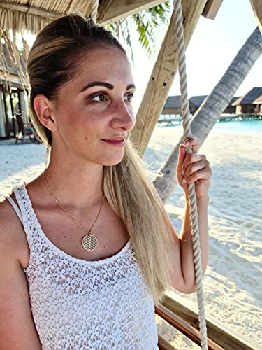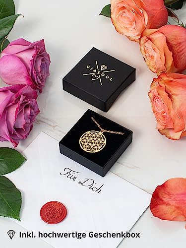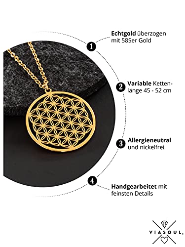 VIASOUL® Halsketting bloem van het leven, levensbloem, ketting voor dames, Flower of Life hanger, met 585 goud verguld, de originele bloemenketting